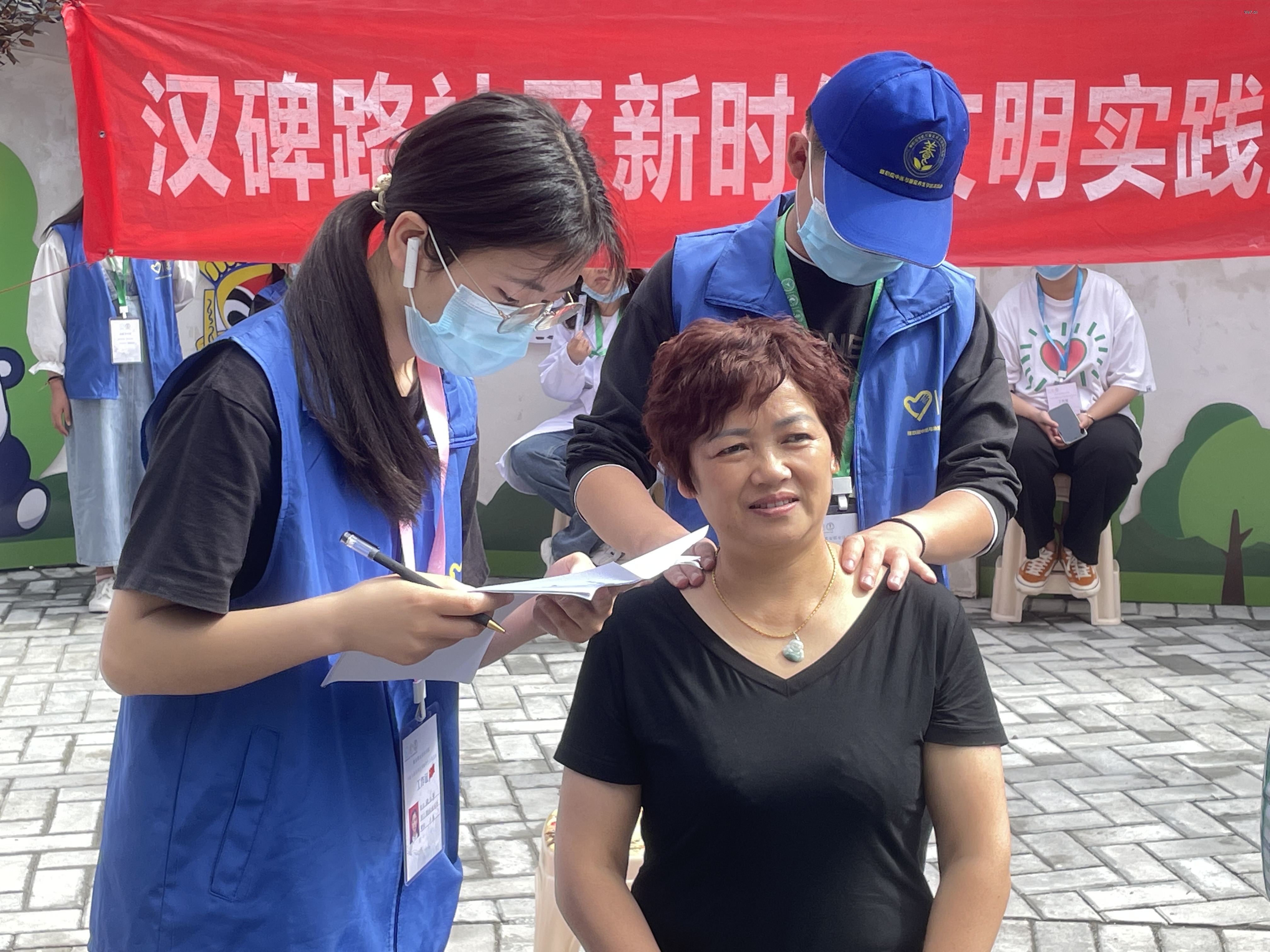 5月20日上午,TapTap直属党支部与TapTap点点康养公司直属党支部、TapTap点点中医与康复养生公司青志协中医养生志愿服务队共同在汉碑路社区金凤小区开展了义诊活动。TapTap直属党支部教师党员陈慧和李天博参加了此次活动。两位同志长期在附属医院进行医教结合。陈慧负责内科义诊,李天博负责外科义诊,利用专业知识为居民们提供问诊、查体、咨询等医疗服务,同时也对TapTap点点附属医院开展的业务进行了宣传。康养公司的志愿者们对居民们开展了中医按摩、艾灸等服务。此次活动服务居民约100余人,获得了汉碑路社区工作人员和金凤小区居民的一致好评。