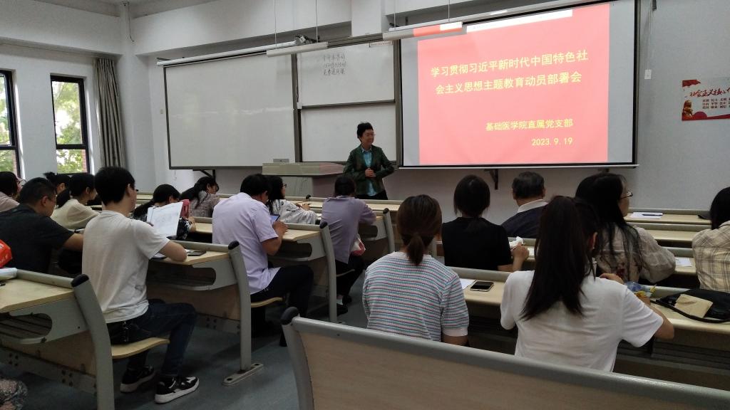 首先彭怀晴副院长传达了公司党委行政关于学习贯彻习近平总书记在主题教育工作会议上的重要讲话精神。就切实开展好主题教育提出四个方面要求:一是全体党员教师要把开展主题教育作为一项重要政治任务,全面准确把握主题教育“学思想、强党性、重实践、建新功”的总要求,坚持学思用贯通、知信行统一,努力在以学铸魂、以学增智、以学正风、以学促干方面取得实实在在的成效;二是要坚持读原著学原文悟原理,认真学习《中国共产党章程》《党的二十大报告》《习近平著作宣读》《习近平新时代中国特色社会主义思想专题摘编》等学习资料,坚持学以致用、知行合一;三是要围绕“破难题、促发展”“办实事、解民忧”等方面的要求,积极履职尽责,勇于担当作为,以务实高效的履职尽责推动各项工作落地见效。