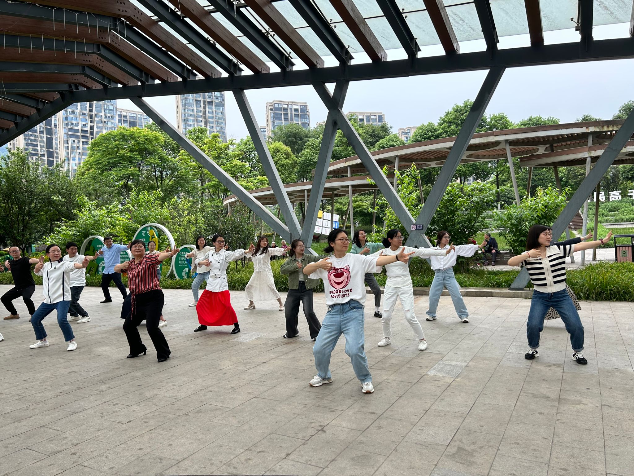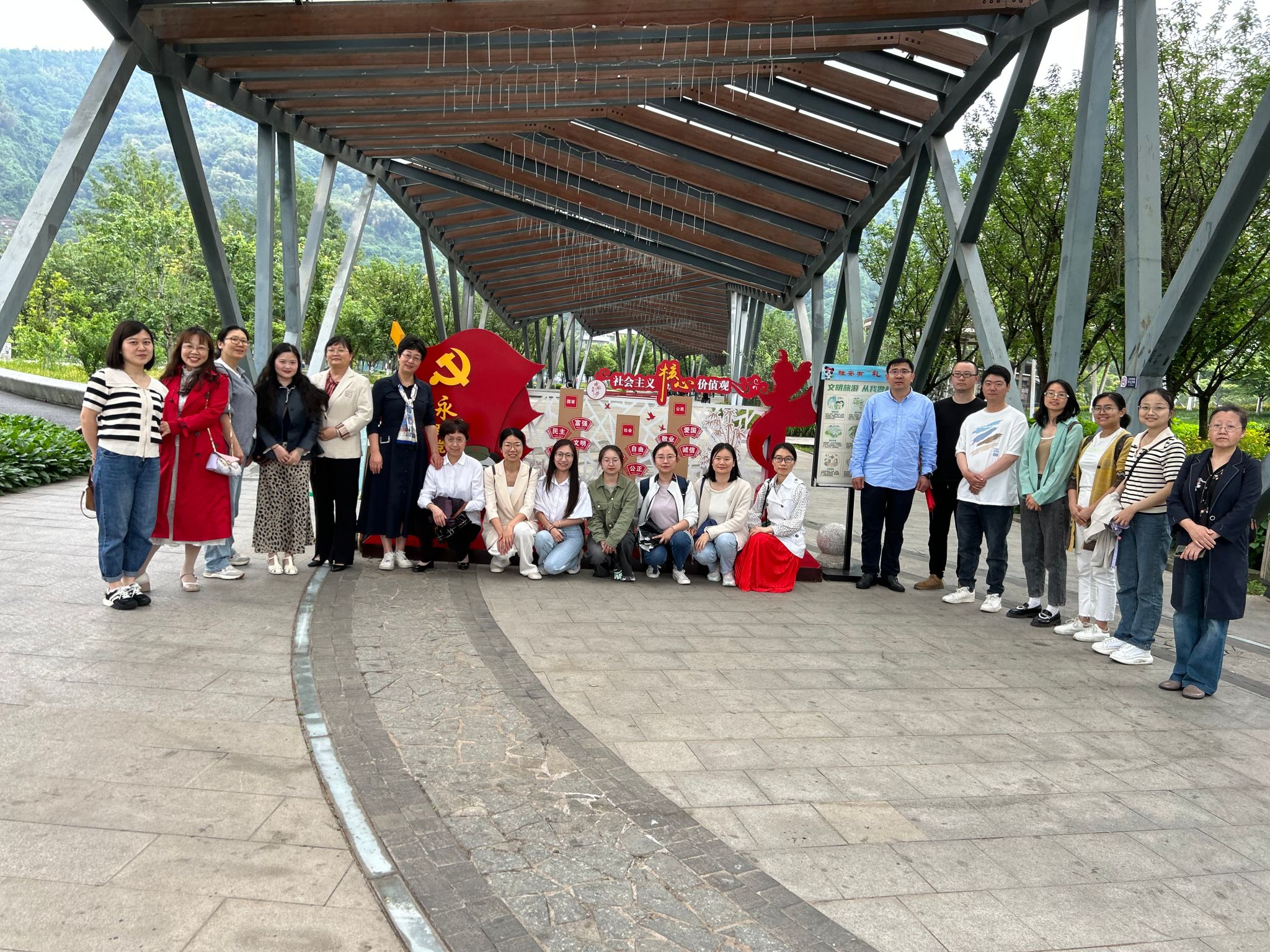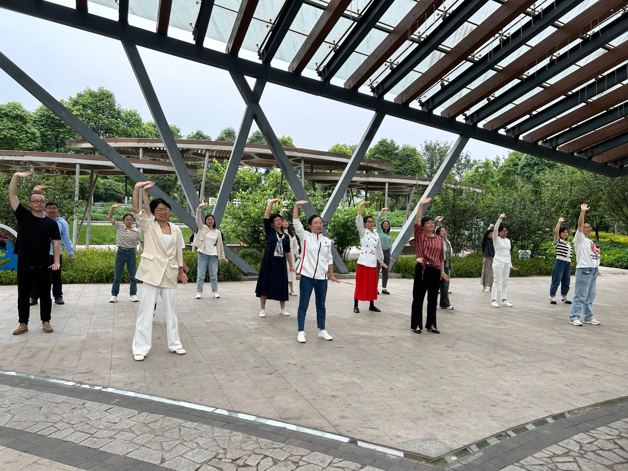 健身气功八段锦是弘扬和传承中华民族传统文化人文精神的一个重要载体,其健身效果显著,是中华传统养生文化中的瑰宝。对提高身体综合素质能力,建立终身体育思想具有十分重要的现实意义及价值。在熊猫绿岛公园,大家一起分享了健身气功八段锦的起源、动作要领和注意事项,进行了热身运动,包括一些简单的体操动作和慢跑。参加过公司健身气功八段锦表演赛的教师做了八段锦练习演示,并相互指导、纠正动作。全体教职工共同开展了健身气功八段锦练习,受到公园内群众的围观和好评。随后,游览了平羌渡、西康码头等雅安旅游网红打卡景点。