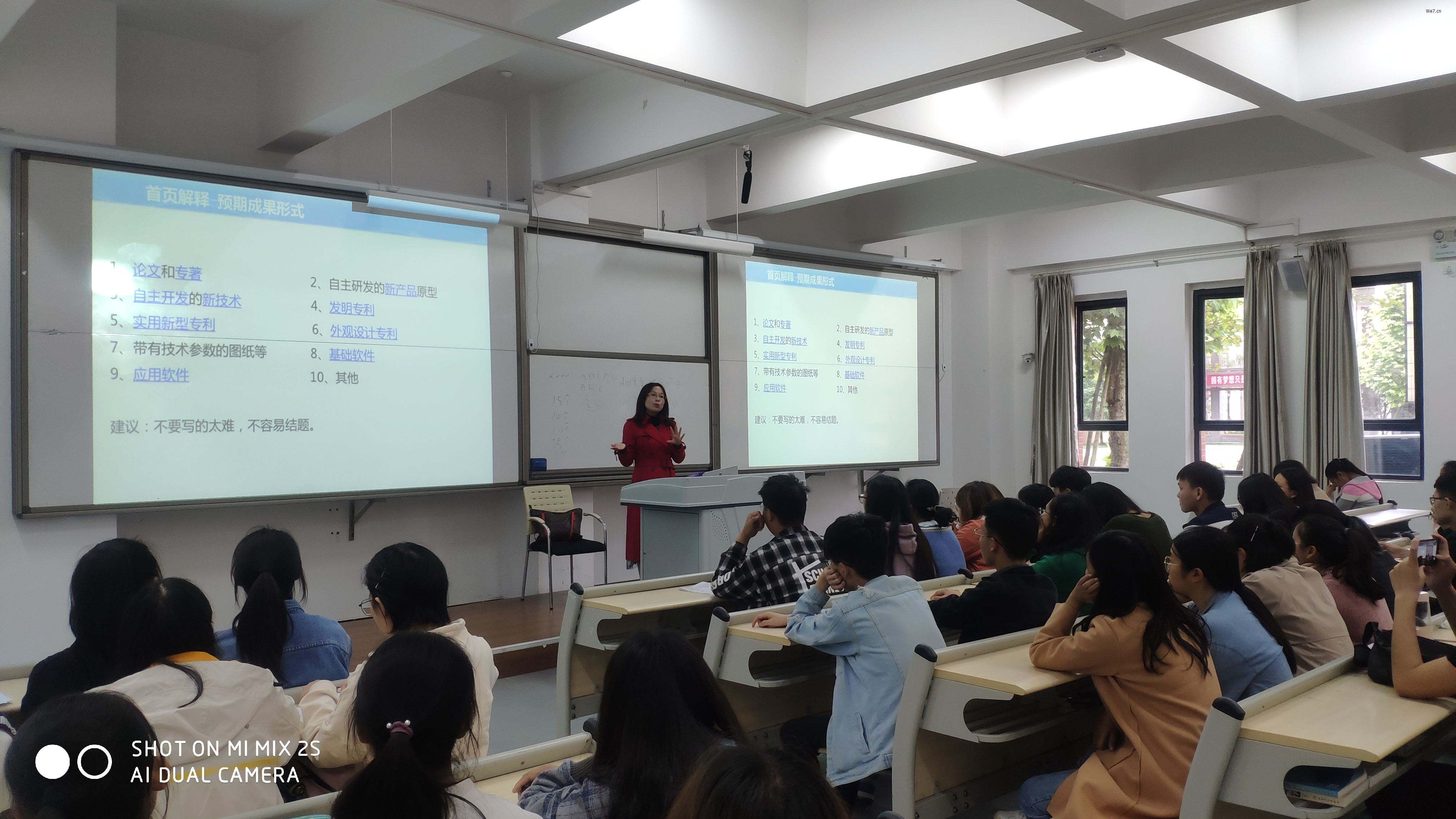 李明蓉老师主主要从以下几个方面进行了讲解:1.科研课题申报细则及申报书首页解读;2.课题论证的方法和经验;3.完成课题研究的条件、保障、撰写方法和经验;4.申报书撰写与论文撰写的不同;5.如何参考重要文献及列举参考文献的方法。 在本次讲座中,李老师用生动的讲解、亲切的互动,案例的分析,将枯燥的申报内容变得生动有趣,正如苏轼所言“横看成岭侧成峰,远近高低各不同”,通过灵活变通,画龙点睛,让同学们积极参与到讲座中,加强了讲座的效果。