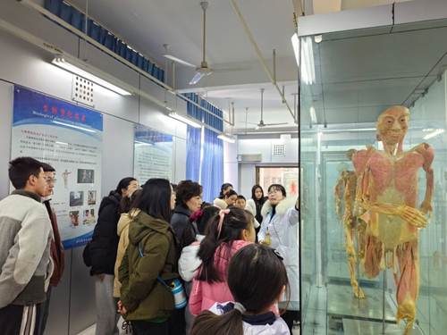 “天府科普使者”李明蓉带领亲子家庭在科普基地的人体生命科学馆参观了人体胚胎发育过程、正常人体大体解剖结构,通过塑化造型的肉、骨骼、神经和血液循环标本等标本展示出不一样的“自己”,使学员感受生命的神奇,领略到生命的奥秘。