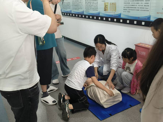 5月24日由程志超老师带来的气道异物梗阻急救的讲解,程老师从孩子们日常吃饭的好习惯讲起,为什么吃饭不要讲话大笑大哭而要安静,然后讲气道异物梗阻的类型、轻度与重度梗阻表现(咳嗽无力、无法发声、窒息体征),演示《海姆立克急救法》(成人/儿童差异化操作),强调"剪刀、石头、布"定位口诀(脐上两指、握拳、快速冲击)的施救方法,在亲子演练环节,邀请了两组家庭上台模拟不同场景(幼儿背部拍击法、成人立位腹部冲击法),然后家长与孩子分组实操,讲师志愿者一对一逐步指导纠错。