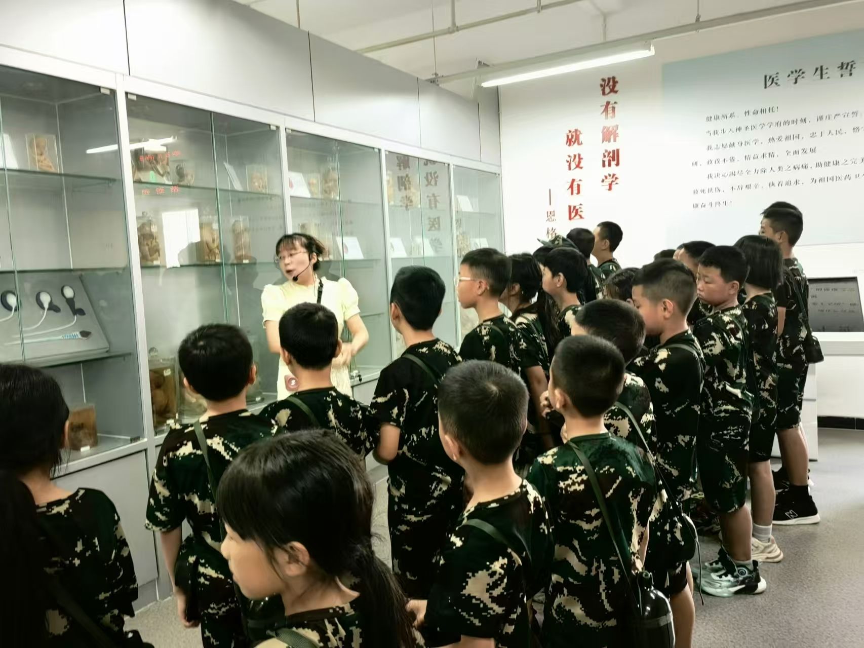 在人体生命科学馆,李明蓉老师带领队员们感恩生命,向遗体捐献者致敬,随后参观学习了胚胎发育过程、正常人体大体解剖结构,通过各类实体标本,尤其是塑化造型的肉、骨骼、神经和血液循环标本等展示出不一样的“自己”,使学员们感受生命的神奇与珍贵,从中领略到生命的奥秘。