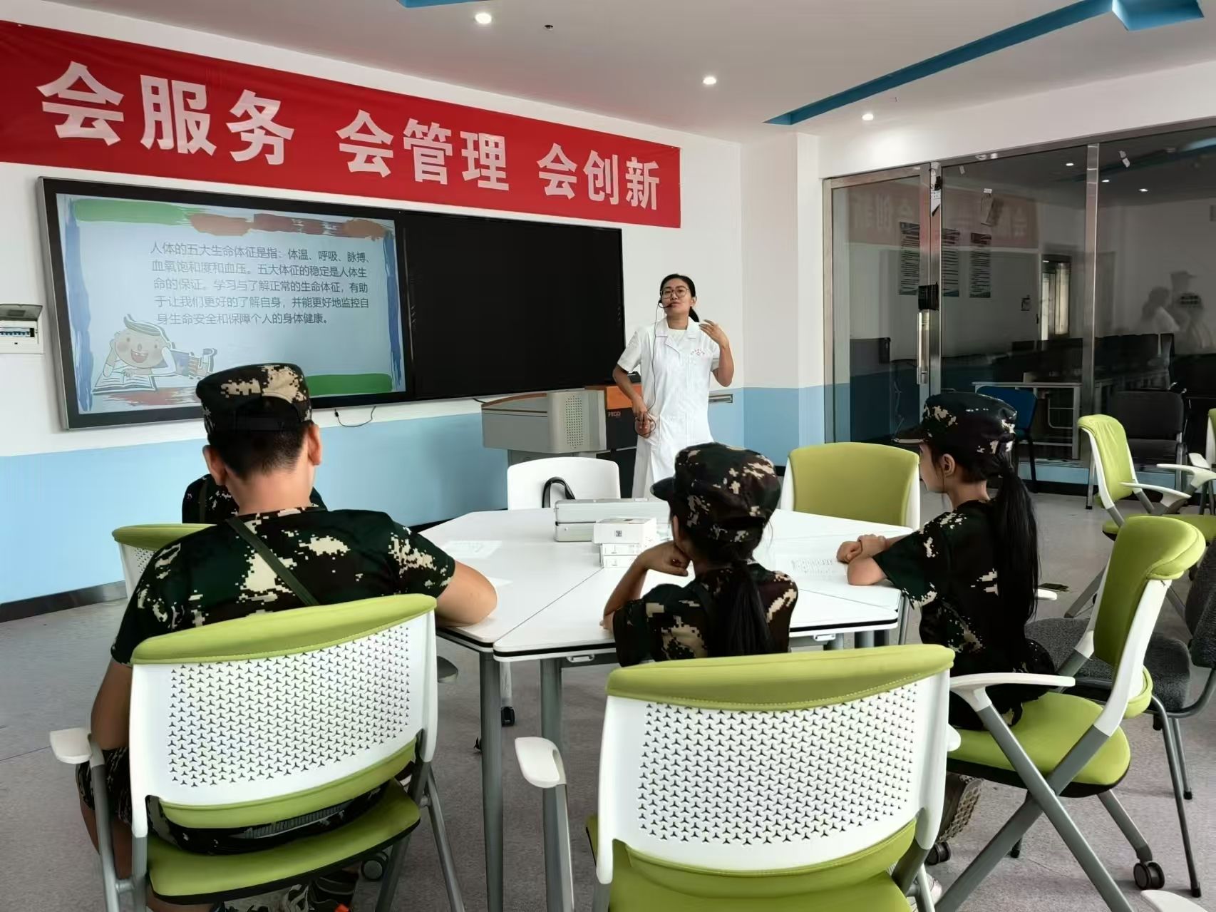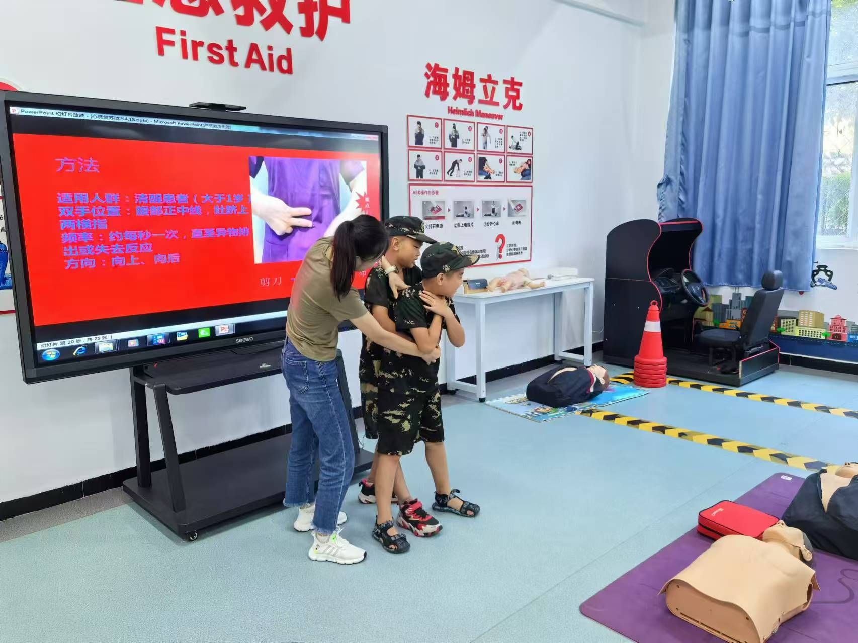 在综合实训楼106科普培训了意外伤害和急救技能。任丹和余荣雪老师向同学们展示了心肺复苏和海姆立克急救法,基本外科护理包扎等操作,并对同学们的操作进行现场指导。